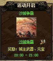 2.活动开启前需要会长或者副会长去沙巴克沙城争霸NPC处报名,报名需要消耗投名状。